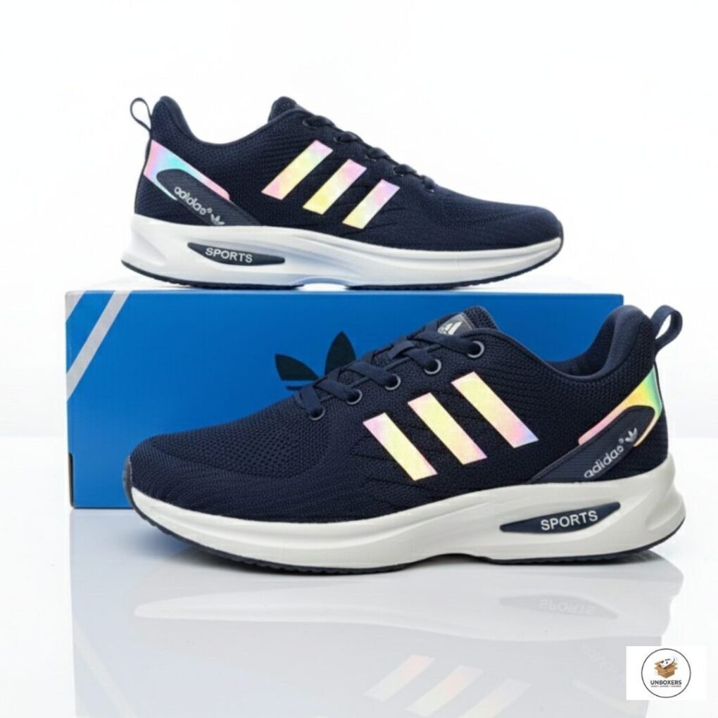 Adidas Running Sneakers – Blue & Rainbow Stripe