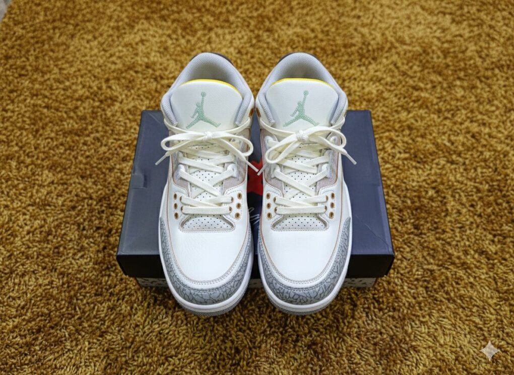 ordan 3 Retro “Sunset Drift” হলো একটি অনন্য ডিজাইনের প্রিমিয়াম জুতো, যা আপনাকে দেবে স্টাইল ও আরামের নিখুঁত সমন্বয়। এর সাদা প্রিমিয়াম লেদার বডি, গ্রে এলিফ্যান্ট প্রিন্ট, ও পেছনের উজ্জ্বল কমলা-হলুদ গ্রেডিয়েন্ট ডিজাইন জুতোটিকে করে তুলেছে একেবারে চোখে পড়ার মতো। নিচের ব্লু আউটসোল এবং Air Unit কুশনিং সিস্টেম দীর্ঘ সময় পরার জন্য দেবে অসাধারণ আরাম।