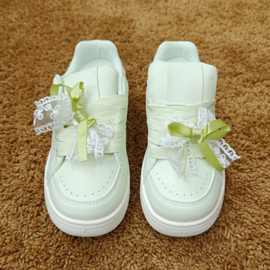 প্যাস্টেল সবুজ রঙ, কিউট কার্টুন ও ফুলের প্রিন্ট, আর লেইস ডিজাইনের ফিতার মিশ্রণে জুতাটি দেখতেও অনন্য এবং একদম নারীত্বপূর্ণ।