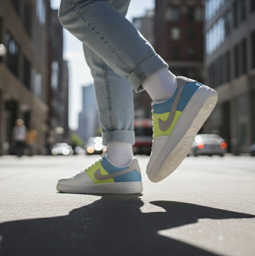 Air- Stylish Sky Blue & Neon Yellow Low-Top Sneakers – Replica